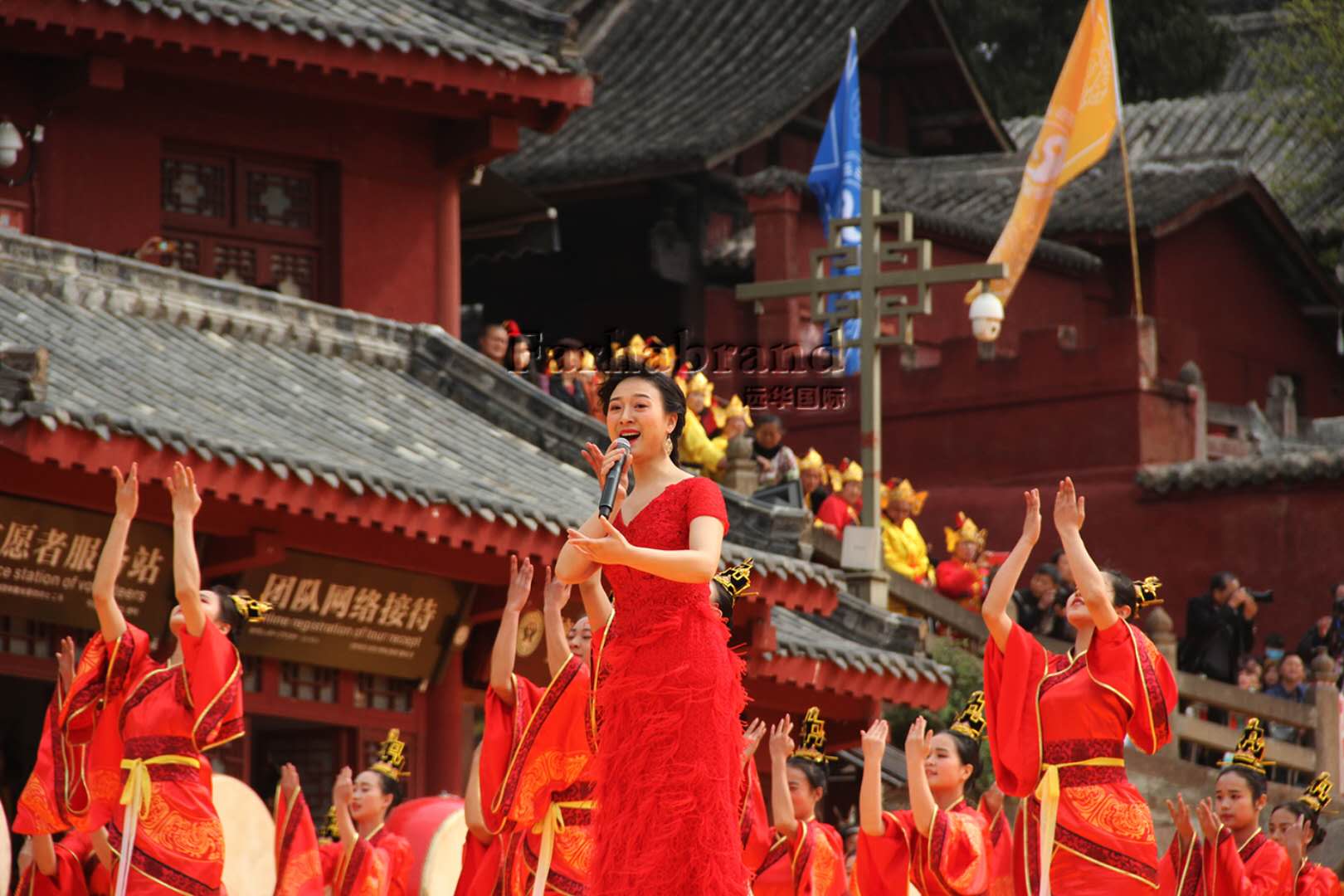 最后,在大型祭祀樂舞中,青年歌手王丹引吭高歌《頌文昌》,掀起兩岸民眾公祭共仰文昌、祈福中華復興的高潮。